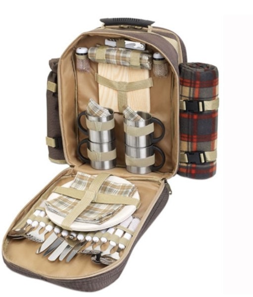 Ik ben ook dol op picknicken, maar in de praktijk prop ik gewoon alles in een grote rugtas met een picknickkleed van de decathlon (deze is relatief klein op te rollen en kan aan de zijkant van mijn rugzak worden vastgegespt). Verder gebruik ik gewoon het campingservies van kunststof en een thermosfles van de decathlon. In mijn rugzak zit een vak achterin met stof en elastiek waar ik borden, bestek, inklapbare bekers in stop. Eten in het grote vak. Drinken in de zijvlakken aan de buitenkant. Ik zou dus gewoon apart leuke spullen uitzoeken.