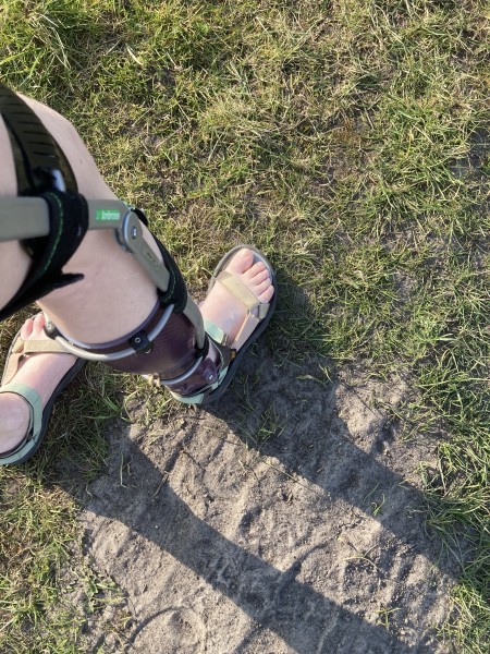Maar ik las ergens dat iemand zijn AFO droeg met teva’s. En het past inderdaad! Had ik dus echt niet verwacht. Nu kan ik straks met warm weer of op het strand of zwembad bijv gewoon open schoenen aan ipv altijd gympen. Het klinkt misschien heel onbenullig, maar ik ben er echt heel blij mee. Er moet alleen nog wat eelt worden gekweekt boven mijn hak, want het scharnier scheurt nogal vervelend er tegenaan. Als dat niet lukt, zijn er altijd nog mijn vriendjes aka blarenpleisters.