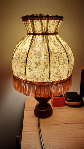 Toen mijn grootmoeder stierf vorig jaar, mochten de (klein)kinderen ook door de inboedel gaan. Ik heb, o.a, deze bedlampjes (het zijn er 2), die mijn grootvader zelf heeft gemaakt toen hij ziek thuis kwam te zitten (hij heeft, als een van de eerste patienten toen, een levertransplantatie gehad).