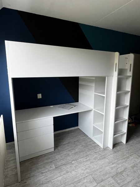 In totaal 8 uur zoet geweest met deze hoogslaper. Kwam ook omdat bij de ladekast ik zelf maar moest uitzoeken waar de geleiders moesten. Dat was trial en error 🙈🙄. En ze hadden as usual sommige gaten te klein gemaakt. De ladder moet nog een keer want we hebben een stap gemist. Ik ben wel echt kapot moe nu. In deze hitte was het ook wel erg heftig.