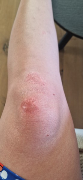 Toch6 Au. Dat was lang geleden dat ik een schaafwond had. Maar N heeft niks dus ben goed gevallenπ€ͺ zelf kapotte knie en beide benen net boven mn voeten geschaafd. Deze plek brandt behoorlijk π¬