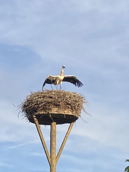 Dit is Bob, de baby ooievaar bij mijn zus in de tuin. Zijn twee broertjes / zusjes zijn inmiddels al uit het nest gekieperd door papa en mama ooievaar en naar de eeuwige ooievaarsvelden vertrokken. Jep dit doen ooievaars bewust. De sterkste uit het nest mag blijven leven.