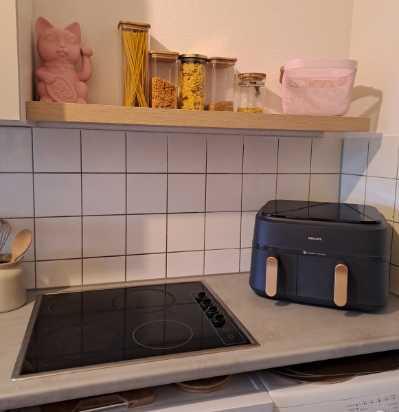 CrazyCatLady De keuken is semi-klaar. De tegels moeten nog gedaan worden, een lamp en een plank ophangen en een plintje. Maar mijn vakantie zit er op, dus goed genoeg voor nu..