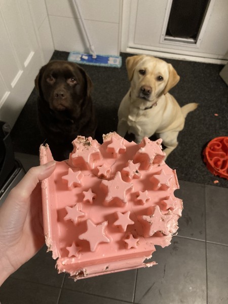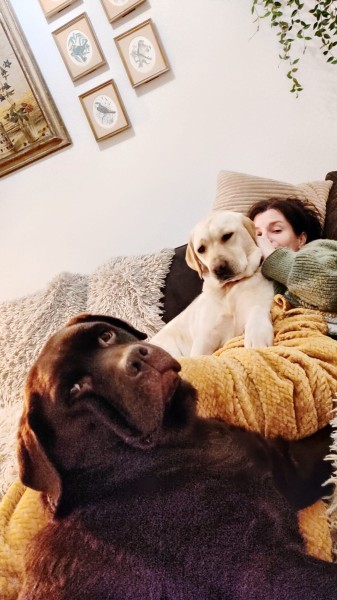 Meteen kijken of hij ergens pijn had ofzo (trauma van de vorige hond met kanker), maar dat viel gelukkig mee. Het euvel? De vijfde nagels (die hoger aan de pootjes zitten) zaten in elkaar gehaakt en daarom had ie een 'veters aan elkaar geknoopt' moment đ