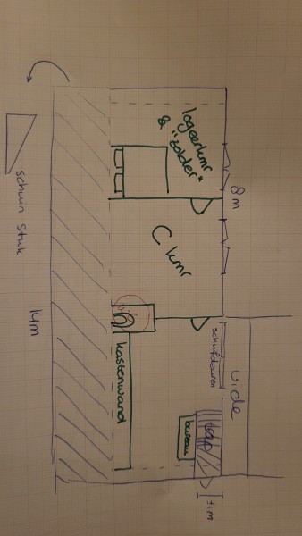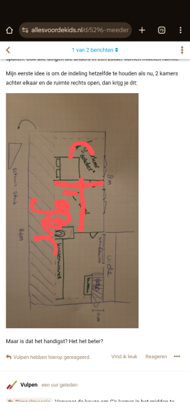 Er komt ook een kamer voor C, een logeerkamertje en ruimte voor spullen. Ook alle dingen die anders in een zolder komen moeten ruimte.